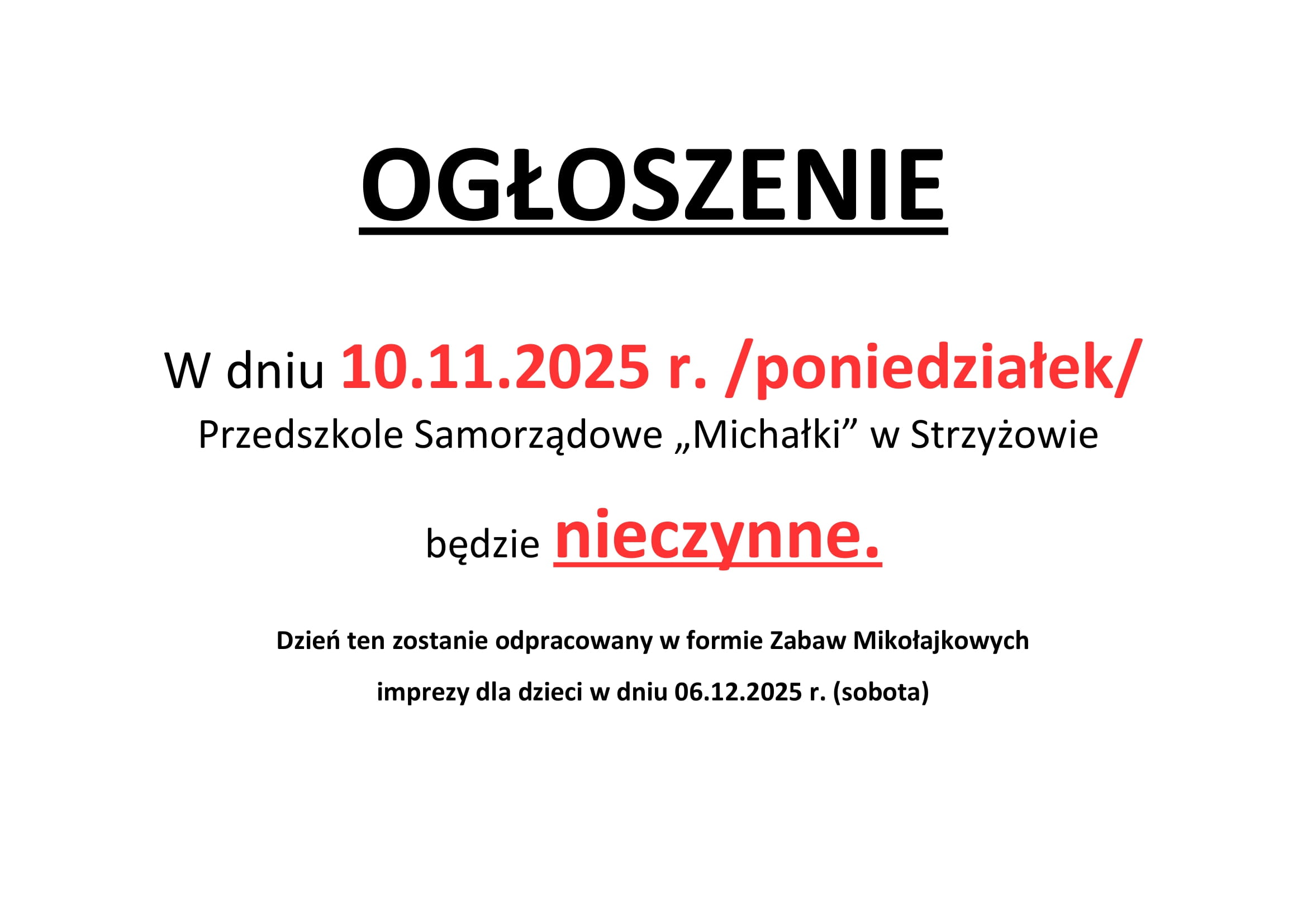 Prosimy wszystkich rodziców o zachowanie szczególnej ostrożności przy dojeździe oraz dochodzeniu do przedszkola zarówno od strony ulicy Zawale jak i od strony ulicy Czarnieckiego.